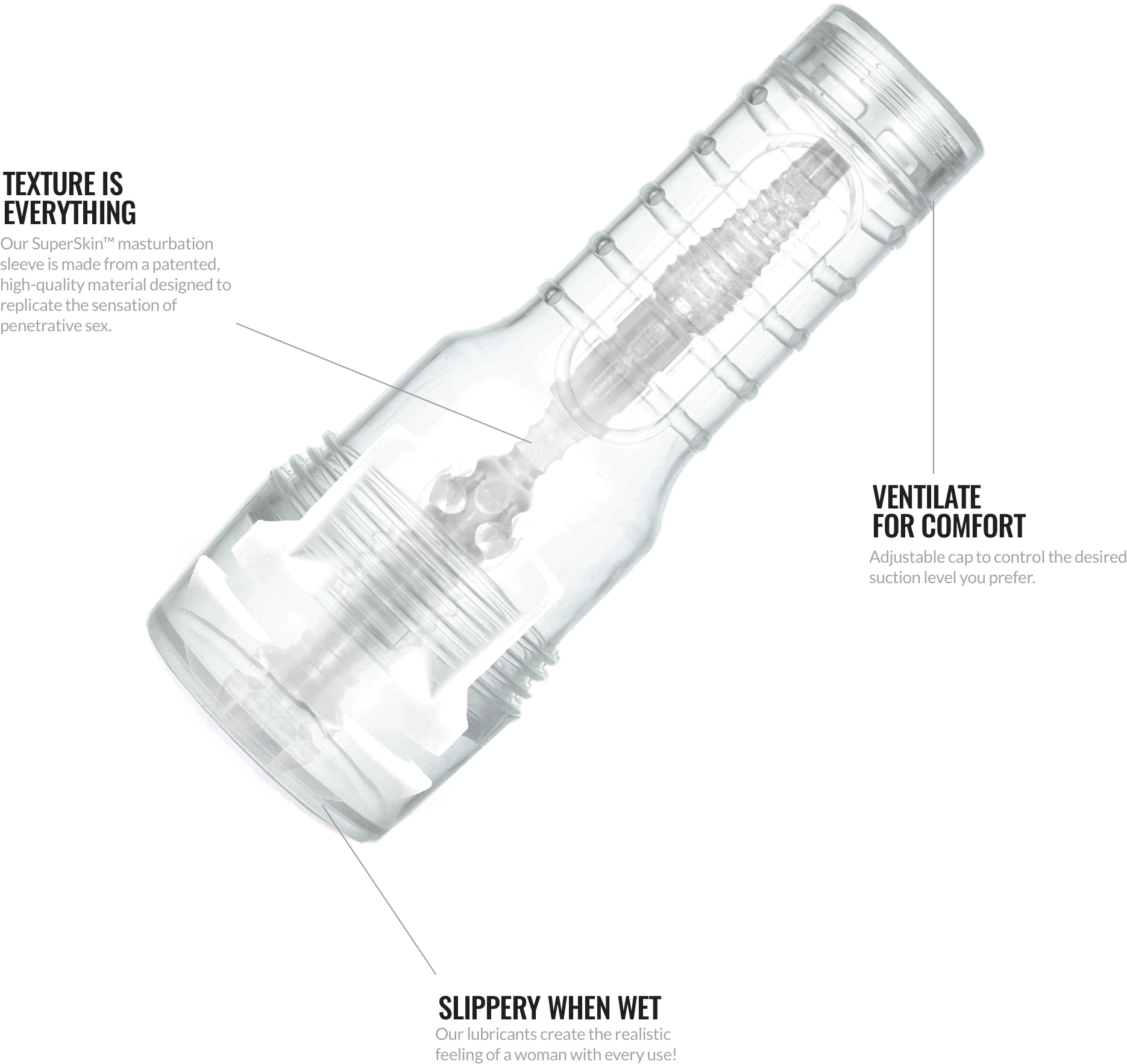 Sleeves are all made from Real Feel Superskin™ which feels so much like real skin, it's unreal.