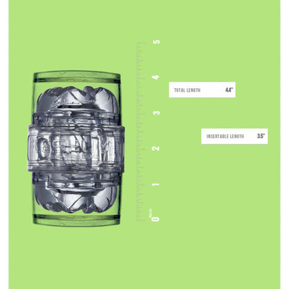 DISCLAIMER: While most of our male customers can enjoy the Quickshot line of products, there are some individuals whose endowment may prevent them from doing so comfortably. A customer whose penis at any area is girthier than approximately 5.5” or 14 cm may find the Quickshot too tight or restrictive. Customers should use their best judgment to determine if this Fleshlight toy would be the right size for them – if not, there is a wide variety of full-size Fleshlight toys to choose from! Please note that opened/used toys may NOT be returned for refunds. Men with larger girth penises may still be able to use the Quickshot sleeve without its casing, but that is left to the individual user’s discretion.